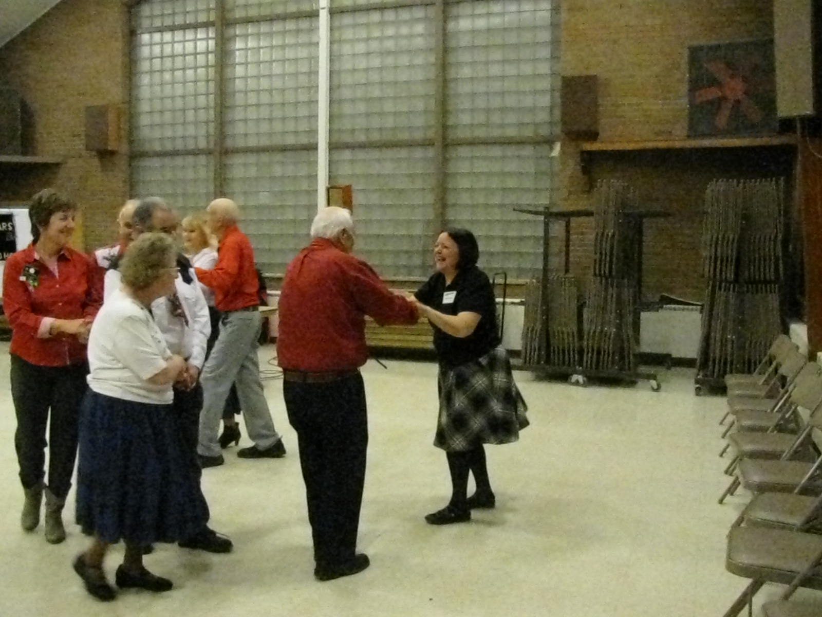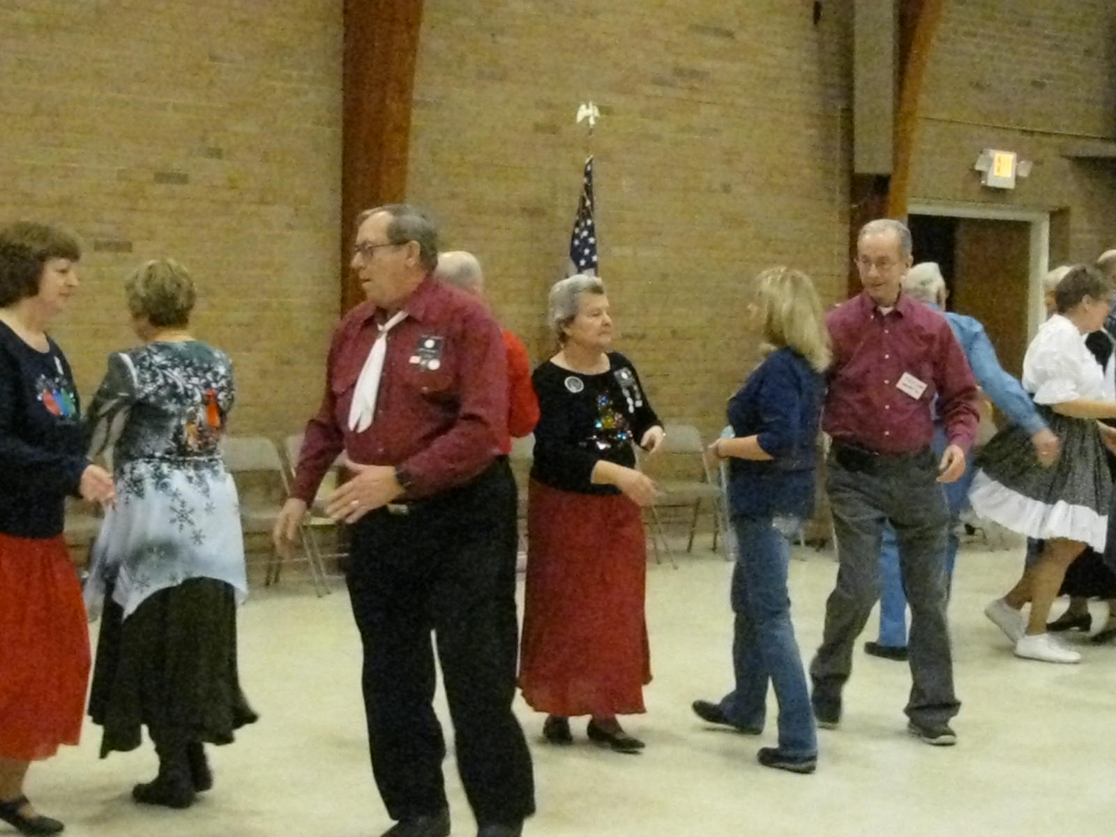 On 12/13/2013 we had our first student level dance for the 2013-2014 year. Tom Strickland was the caller for the dance and we had 6 students attend the dance. Lake Erie Squares banner raided Students from Lake Erie Squares and Solo Squareswith 13 members. We danced 5 squares most of the night. Terry Kremzar won the free dance pass for bringing some goodies for the snack table and even though the president held the bucket of 50-50 tickets above her head, Terry succeeded in drawing her husband’s ticket. The cakewalk prize that Norm and Marilyn Ostroske provided was won by Jeff Zemito.